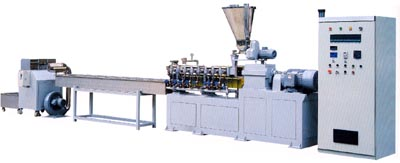 INVEX变频器在挤出机械上的应用一、挤出机介绍塑料通过挤出机塑化成均匀的熔体,并在塑化中建立的压力作用下,并使螺杆连续地定温,定量,定压地挤出机头。大部份热塑性塑料均采用此方法, 螺杆挤出机有多种不同的型号和规格,最常用的挤出机就是螺杆挤出机。采用久川交流变频器的挤出机主机传动,能够完全满足挤出机的工艺要求,达到必要的工艺控制指标,经过实际运行来看,运行稳定,产品的适应性强,经济效益明显。